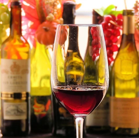 ソムリエの選ぶ50種のワインが自由に飲み放題♪シェフこだわりの料理の数々と共にお楽しみください!2時間2600円でくずまきワインも飲み放題です。