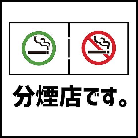 当店は分煙対応店です。喫煙可能席のご用意がございます。愛煙者のお客様もどうぞ。【忘年会・新年会・宴会・団体様歓迎】