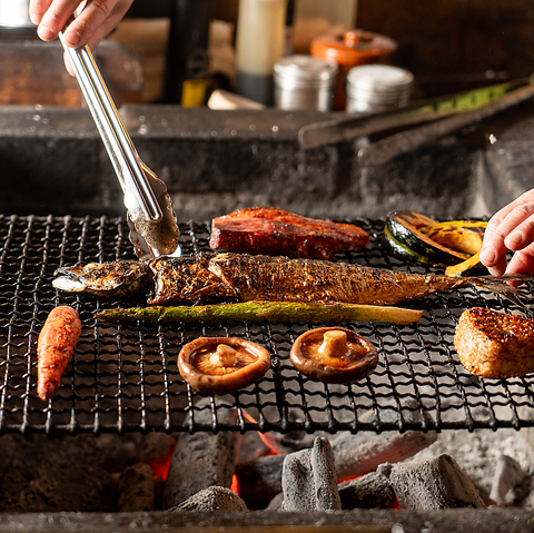 全国から厳選した産地直送の食材を旨いままに、炭火でじっくりと焼き上げた自慢の炉端焼き。味はもちろん、豪快な香り、見た目、音など食べる前から楽しめるのも魅力です♪