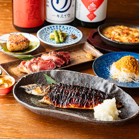 当店名物の鯖やとろほっけ、いわし丸干しなどの干物をはじめ、全国から厳選した産地直送の食材をご用意!