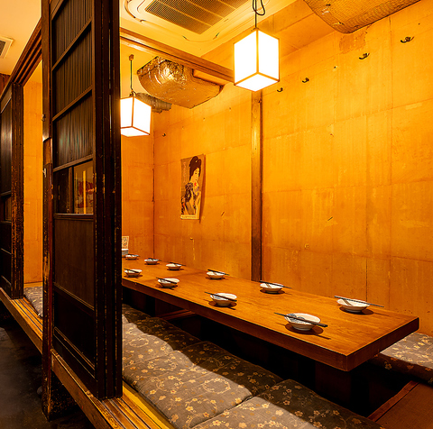 周りに気にせずごゆっくりとお食事をお楽しみいただける完全個室席は4名~最大14名様にてご利用いただけます。会社仲間との打上げや飲み会、歓送迎会、同窓会、女子会など、多彩なシーンでご利用ください。皆さまのご来店を心よりお待ちしております。