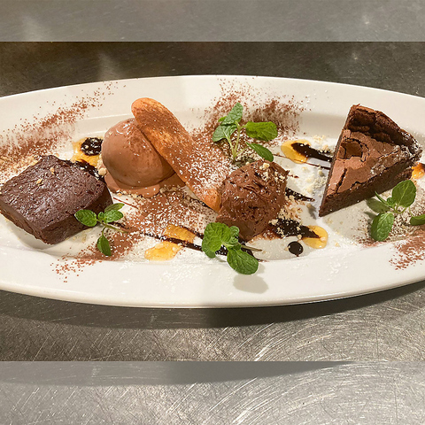 【バレンタイン・スペシャル!2/15まで】チョコレートの甘さとコク深さを主役に、種類豊富な自家製デザートを味わえるひと皿です。