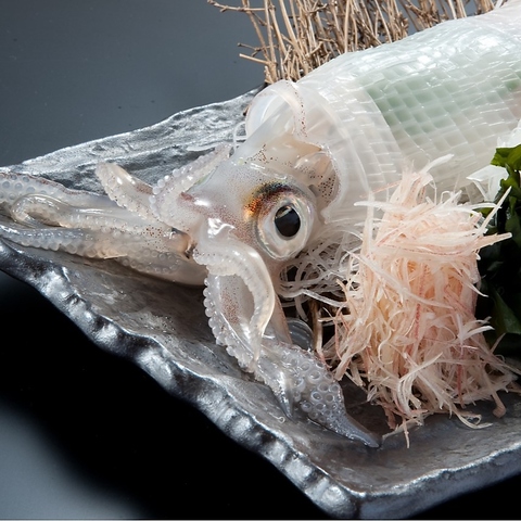 当店の料理長は、こだわりの食材を求めて自ら産地へ足を運び、新鮮な食材を仕入れています。現在、呼子産の剣先イカが入荷中で、その鮮度は抜群で、その美しい姿と甘み、そして食感が特徴!呼子は新鮮な海の幸が集まる場所として有名で、特に剣先イカはその鮮度と旨みから、多くのお客様に愛されています。海の幸を堪能し、特別なひとときを♪