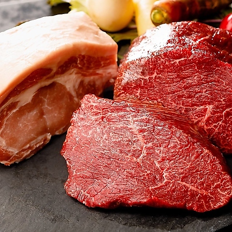 ブラックアンガス牛や黒毛和牛を使用したメニューをご用意しております!牛・豚・鶏をお楽しみいただける盛り合わせや、その日一番良い状態のお肉をお召し上がりいただける部位売りなど、贅沢にご堪能いただけます。