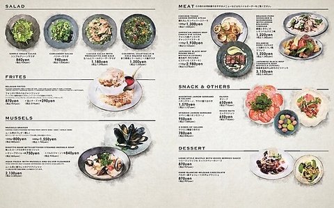 自慢のベルギービールは自社直輸入による50種類以上のボトルと、週替わりで常時5種類の樽生をつないでおります。ビールに合う軽食からしっかりとした食事も、シェフが腕を奮います!お料理も豊富にご用意しております!専用グラスで様々な形のグラスでお楽しみ頂けます。