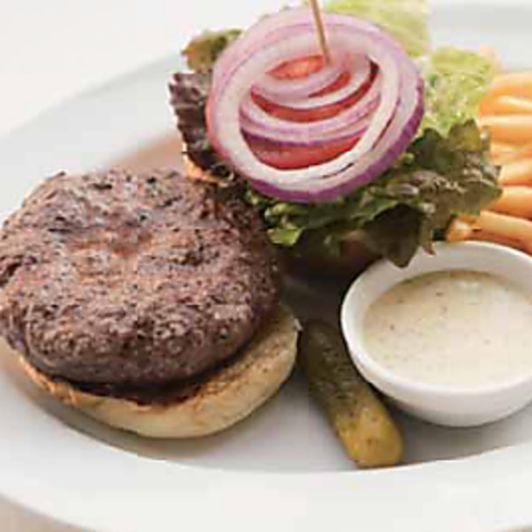 ※フレンチフライは+150円(税込)で「スパイシーポテト」に変更できます。 ※EXTRASトッピング ・チェダーチーズ・ベーコン・アボカド・ブルーチーズ・マッシュルーム 各220円(税込)