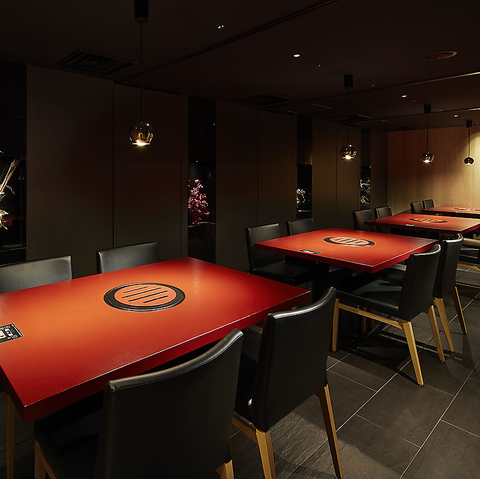 テーブルは大人4人が座っても広々♪どーんとお料理を乗せちゃってください!全席個室で、黒を基調としたシックな内装なので、お食事会や宴会などのビジネスシーンでのご利用にもオススメです◎