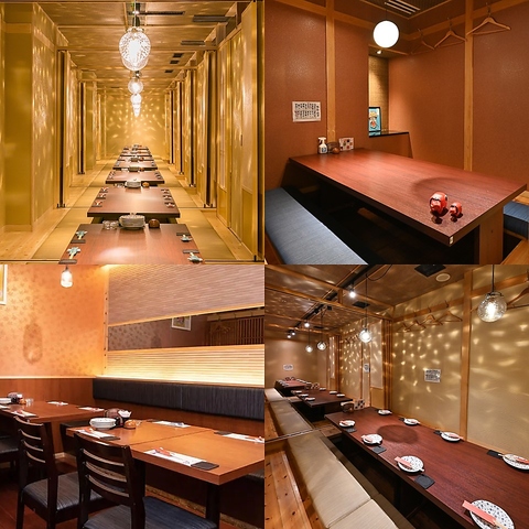 少人数様からお使いいただける掘りごたつ個室もご用意しております!2名様×2卓、4名様×1卓、6名様×6卓をご用意いたしました。足をのばしてくつろげるお席は、和の趣きが心地よくゆったりとお過ごしいただけます!仕事帰りの同僚やお仲間との宴会・飲み会にぜひご利用ください。