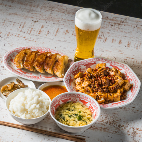 ライスやスープなどが付いた定食もご用意あり◎また、単品料理は+418円(税込)で定食にすることも可能です!