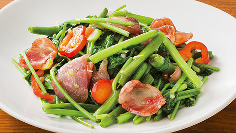 空心菜と腸詰炒め