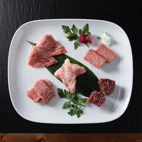 その日一番の仙台牛上物部位を厳選し、贅沢に5種盛り合わせ。各2切れずつご提供するので、2名様でシェアするのにぴったりです。シンプルな塩胡椒で素材の旨みを引き出し、バルサミコ醤油との相性も抜群。特別な日の一皿にも。