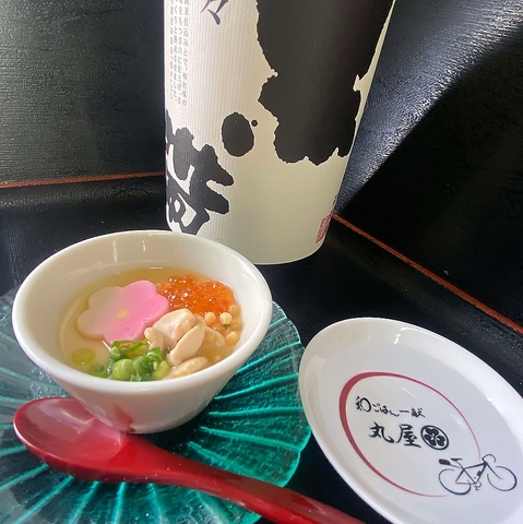 先代が作った『更科』(蕎麦)というお店から、2016年6月から新しい店名『和ごはん一献 丸屋』になりました。丸屋の名前は残しつつ、当主がこれから作っていく『和ごはん一献』(和食)という店名に変えることにしました。看板のロゴにあるロードバイク好きの店主が、毎日自転車で築地まで行き新鮮な素材を仕入れています。