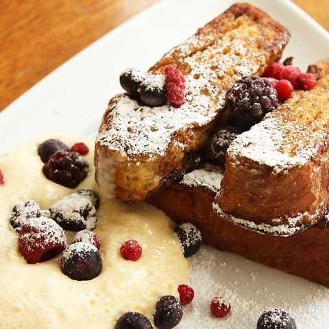 自家製のマスカルポーネクリームとミックスベリーのトッピング軽い口当たりのフレンチトーストです