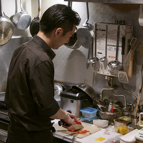 オーナーこだわりの料理を提供しております。カウンターからはキッチンが見えますので、お酒を楽しみながら料理をお選びいただけます。