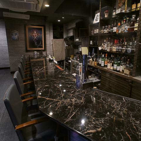 こちらはBARカウンター。ゆっくりとした時間が流れる、友人との食事や仕事帰りの一杯にもぴったりな、気軽に立ち寄れる大人の隠れ家です。