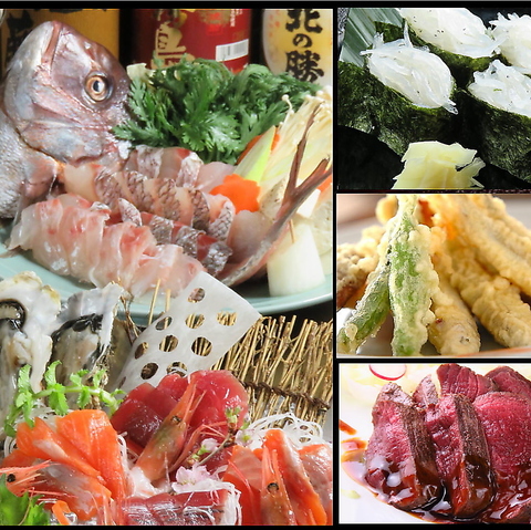 3月は鯛しゃぶ送別会全8品宴会コース。生白魚軍艦寿司やシカ肉など前菜に、仙鳳趾カキや活つぶにニシンなどのお刺身盛り合わせ。ワカサギやあん肝など充実の8品コース。その他、4500円・6000円コースも。ご予算に応じたご宴会も承ります。★クーポン利用で飲み放題は180分or120分地酒飲み放題★