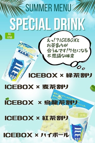 | ハイボール | 別途+500円コーラハイボール/ジンジャーハイボール/ゆずハイボール/アップルワインハイボール |