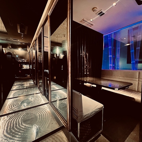 ウォーターカーテンが煌く、神秘的な空間を演出しております♪ お客様のご要望に応えられるように大小様々な個室をご用意♪ プライベートでの利用や会社宴会など多種にも対応可能★ラウンジではカウンターもあり、落ち着いた雰囲気の中で厳選食材も楽しめます。お気軽お電話ください★★