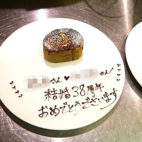 デザートをご注文いただければ、お皿にメッセージをお入れいたします。ご希望のメッセージ、何でもどうぞ。ご予約の際に、事前にお申し付けください。