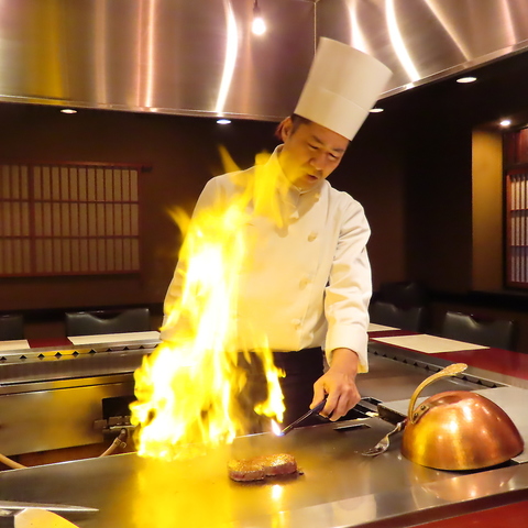 | カウンター | 15名様×1 | 圧巻の鉄板ライブパフォーマンスが楽しめるカウンター席です! |