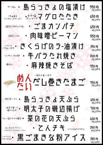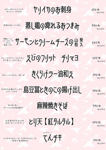 定番のおつまみメニューからがっつりと食べたい方にもおすすめなメニューを豊富にご用意しております◎