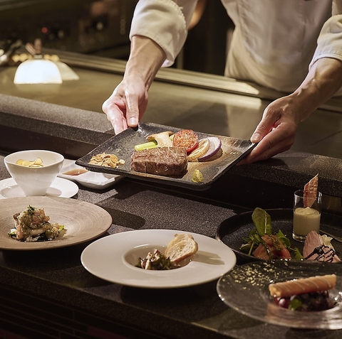 鉄板で食材を焼き上げる音や香り、素材を活かしたシェフ渾身の極上コース料理を心ゆくまでご満喫ください。