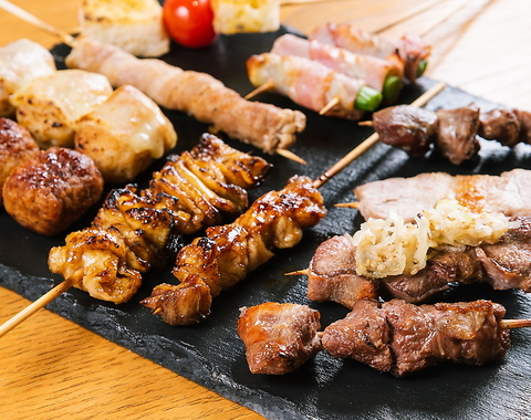 炭火で炙る焼鳥、焼きとんが食べ放題!一品料理も充実の品揃えです。