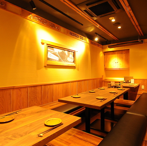 20名様までご着席頂けるテーブル個室は木の温もりが漂う落ち着いた空間となっております。 また、レイアウトを自由に変更出来ますので、少人数から大人数まで幅広くご利用頂けます。各種ご宴会にもオススメです!