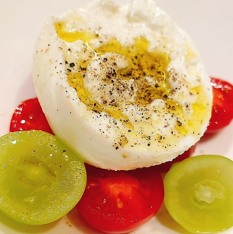 モッツァレッラ〈ブラッティーナ)ミルキーなコクが特徴のブラッティーナチーズをトマトと旬の果実で♪
