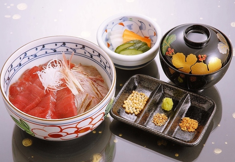 本まぐろを贅沢に使用したお刺身です。※花穂は軸から外して、お刺身と一緒にどうぞ。風味をお楽しみいただけます。