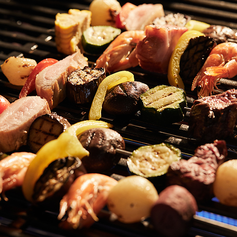 ボタニカルなテラス席でシェフが焼き上げるBBQ