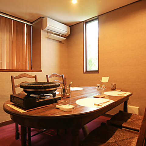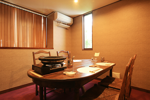 | 個室 | 4名様×1 | 2名様~4名様までご利用いただけるこちらの個室は、茶色を基調とした落ち着いた雰囲気。完全個室のため、人目を気にせずおくつろぎいただけます。全個室には加湿器が設置しており、冷暖房、照明の明るさも各部屋ごとに調節していただけますので、お客様に合わせた設定で快適にお過ごしいただけます。接待や会食におすすめ。 |