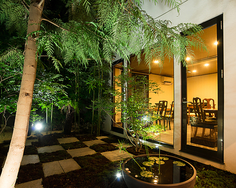 店内は和と洋を融合したモダンな雰囲気で、非日常を感じられる落ち着きがあります。一軒家レストランならではのプライベート感が特徴で、ご来店いただく全てのお客様にくつろぎをお届けします。アクセスも良好な白金エリアに位置し、都会の喧噪を離れて静かな時間を過ごせます
