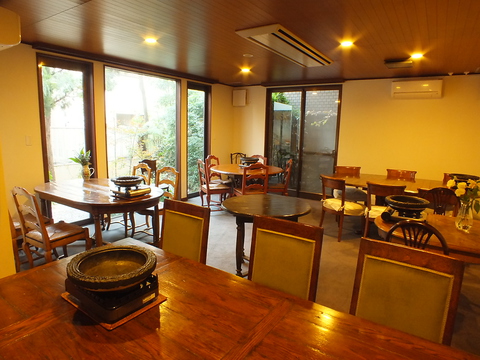| 貸切 | 24名様×1 | 広々とした1階フロアを贅沢にお使いいただけるフロア貸切は10名様~ご利用可能。人数・ご予算に応じたプランをご提案させていただきますので、様々なシーンでのパーティーにご対応いただけます。法事など冠婚葬祭でのご利用には、昼間のお時間帯も貸切プランの相談を受付しております。お気軽にお問い合わせください。 |
