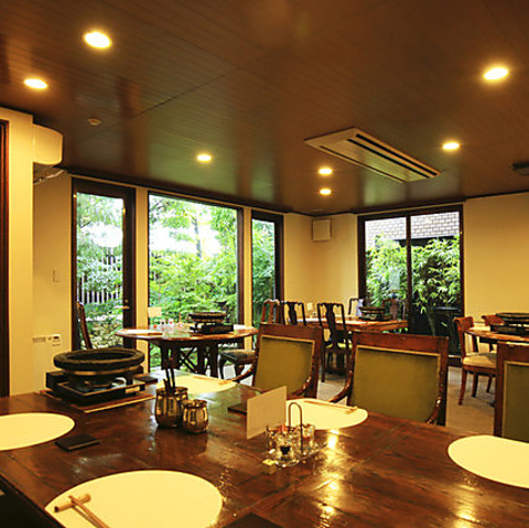 | テーブル | 24名様×1 | 2名様~ご利用いただける1階のテーブル席は、ひとテーブル最大6名様までご利用可能なお席をご用意。ゆったりと余裕を持ったレイアウトと、広々とした大きな窓が開放的な空間を演出。小庭園を見ながら、くつろいでお食事をお愉しみいただけます。落ち着いた雰囲気ですので、結納や法事など冠婚葬祭にも最適です。 |