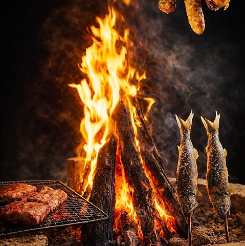 ホッケのあぶり、トロ鯵、コマイ一夜干し、烏賊一夜干しといった絶品海鮮類を囲炉裏の炭火で焼き上げお召し上がりください。