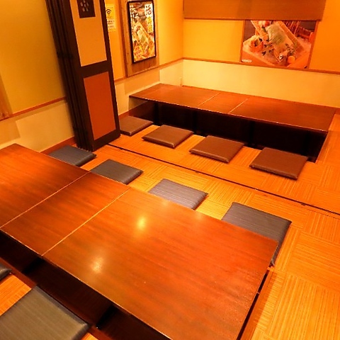 【最大20名様までご利用可能】<10名以上・20名以上用途に応じた個室有>掘りごたつのお座敷をはじめ、人数や用途に合わせたお席をご用意可能です。新年会など各種会社宴会や、同窓会、二次会など様々なシーンにご利用いただけます。大人数でのご宴会や貸し切りもお気軽にご相談ください。