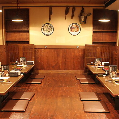 【2F 座敷席】4つの座敷は、会社単位の宴会や同窓会などの団体利用に最適です。各座敷は等間隔に配置されており、プライベート感を保ちながらも大人数での楽しいひとときを過ごせます。お子様連れのご家族も大歓迎です!