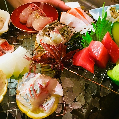 毎日長浜魚市場から仕入れる新鮮な魚(刺身)をリーズナブルなお値段で提供します。鮮魚の盛り合わせ一人前1050円(税込)。一人前と言っても御二人が十分食べられる量と質です!実は魚介の盛り合わせに関しては赤字です。お客様の95%が御注文されます。是非当店へお越しのときは魚介の盛り合わせを御注文ください。