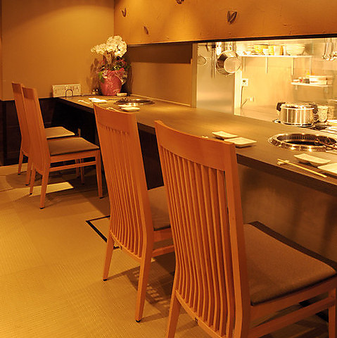 ゆったりと過ごせるカウンター席は、お二人でのご利用にぴったり。一枚から注文できるお肉を楽しめます。