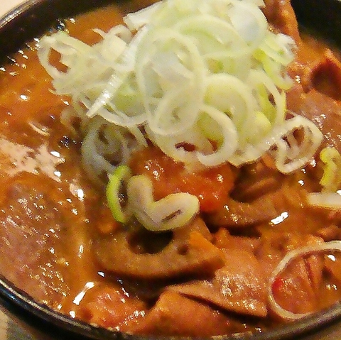 根菜がたっぷり入ったあったかモツ煮込みは、とろとろのモツとちょっぴりピリ辛な風味