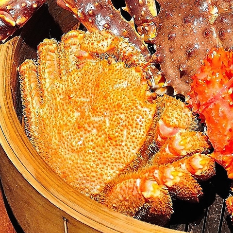 根室から取り寄せている毛ガニ、花咲ガニは通もうなる絶品。身がギュッと詰まり、ひと噛みするごとにカニの旨味が口いっぱいに広がり、つい食べることに集中してしまうほどの美味しさです。日本酒などお酒ともご一緒に、お楽しみください。
