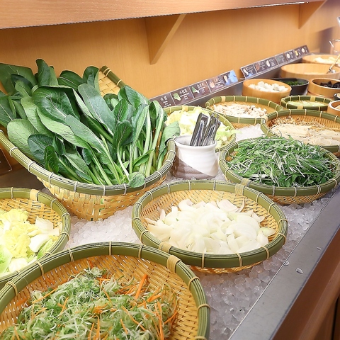 アイスクリームは常時6種類のフレーバーをそろえ、人気のハーゲンダッツも食べ放題!豪華なデザートビュッフェで食後の満足度も抜群です。また、新鮮な野菜ビュッフェや肉屋特製の絶品カレーも充実。しゃぶしゃぶ・すき焼きの食べ放題に加えて、全59種の豊富なメニューを心ゆくまでお楽しみいただけます。