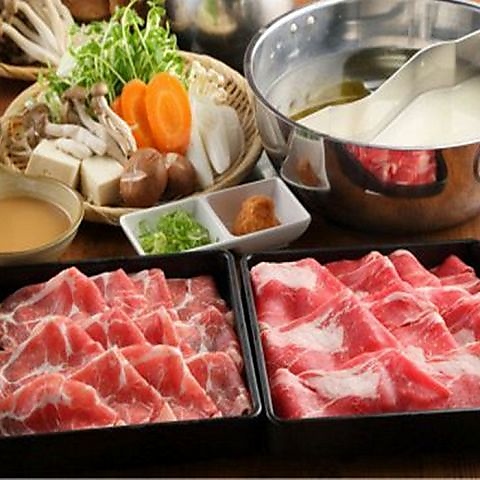 一つの鍋ですき焼きとしゃぶしゃぶを同時に楽しめる名物W鍋。厳選された新鮮なお肉を、お好みの食べ方で心ゆくまでご堪能ください。豪華なビュッフェと飲み放題コースも充実しており、満足度の高いお食事をお約束します。