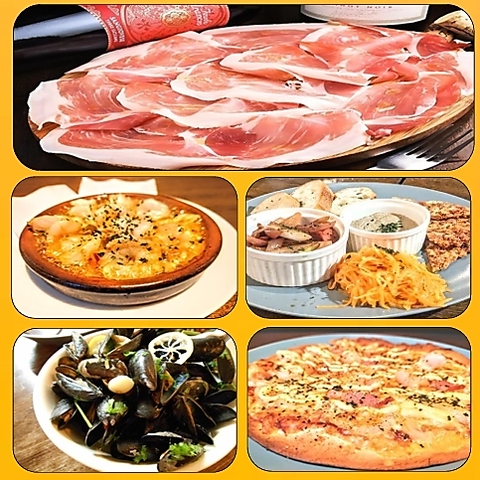 3時間飲み放題付き!スペイン産生ハム『ハモンセラーノ』食べ放題です!他にもエビのアヒージョや人気メニューも一緒に!飲み放題は生ビール&スパークリングワインも入って40種のドリンクラインナップと3時間でゆったり飲めます♪