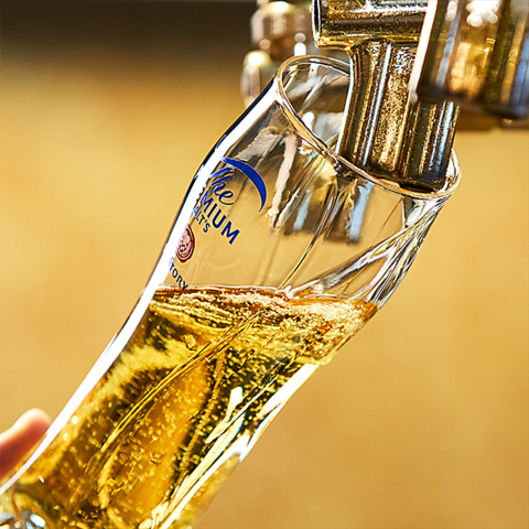 専用グラスで注ぎ方を徹底!クリーミーな泡と麦芽本来のコク、まさに至福の味わい☆今夜は地鶏で一杯いかが