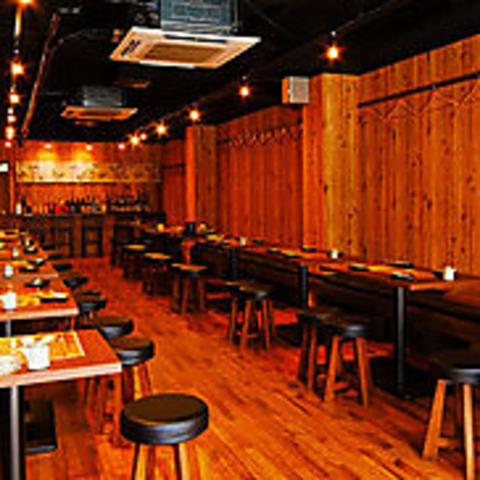 【女子会・グループ宴会】昭和レトロな内観。木のぬくもりが温かい大衆酒場は、どこか懐かしさを感じる世代にも新しさや映えを感じる世代にも大変人気です。通路が広いので、車椅子やベビーカーでのご入店も可能!全席禁煙でお子様連れでも安心です◎テーブル席でまったり女子会やママ会ランチにもお気軽にご利用ください♪