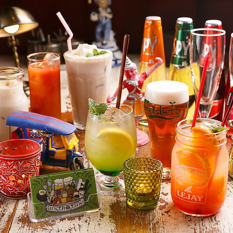 ビストロタイでしか味わえないオリジナルカクテルも豊富にあります。スパイスや南国フルーツのサワー・バタフライピーのカクテル・タイの紅茶のカクテル・スパイスやパームシュガー入りの自家製ホットワインなどお料理との相性は抜群です♪お酒をたくさん飲んでお料理は少しでもというお客様は、120分2300円飲み放題プランもご用意しています。