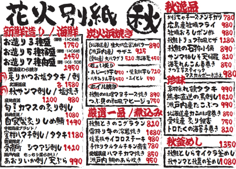 旬の一番いいものを食べていただきたい!思いから季節に応じて別紙メニューをご用意しております