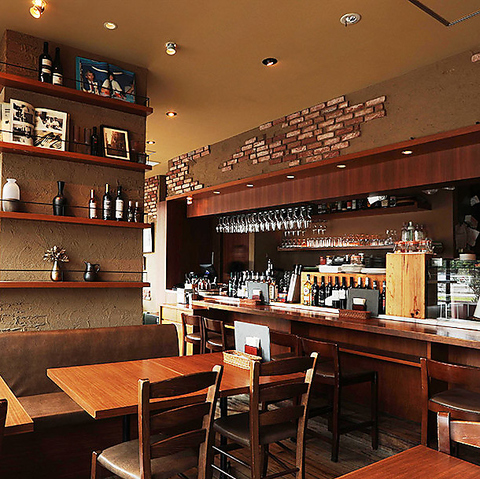 明るい光が差し込む店内。ワインボトルもインテリアの一部になっていてオシャレ。もちろんジャケットでワインを選んでお飲みいただけます♪